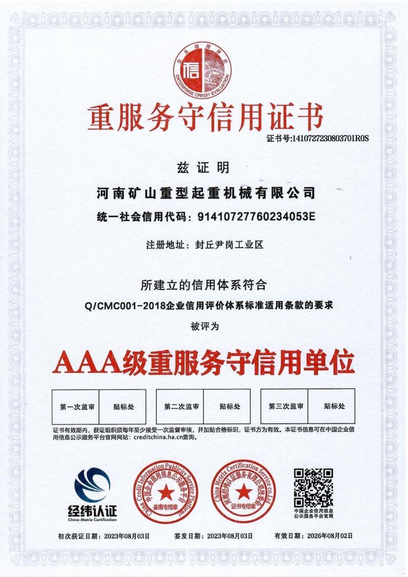 重服务守信用证书