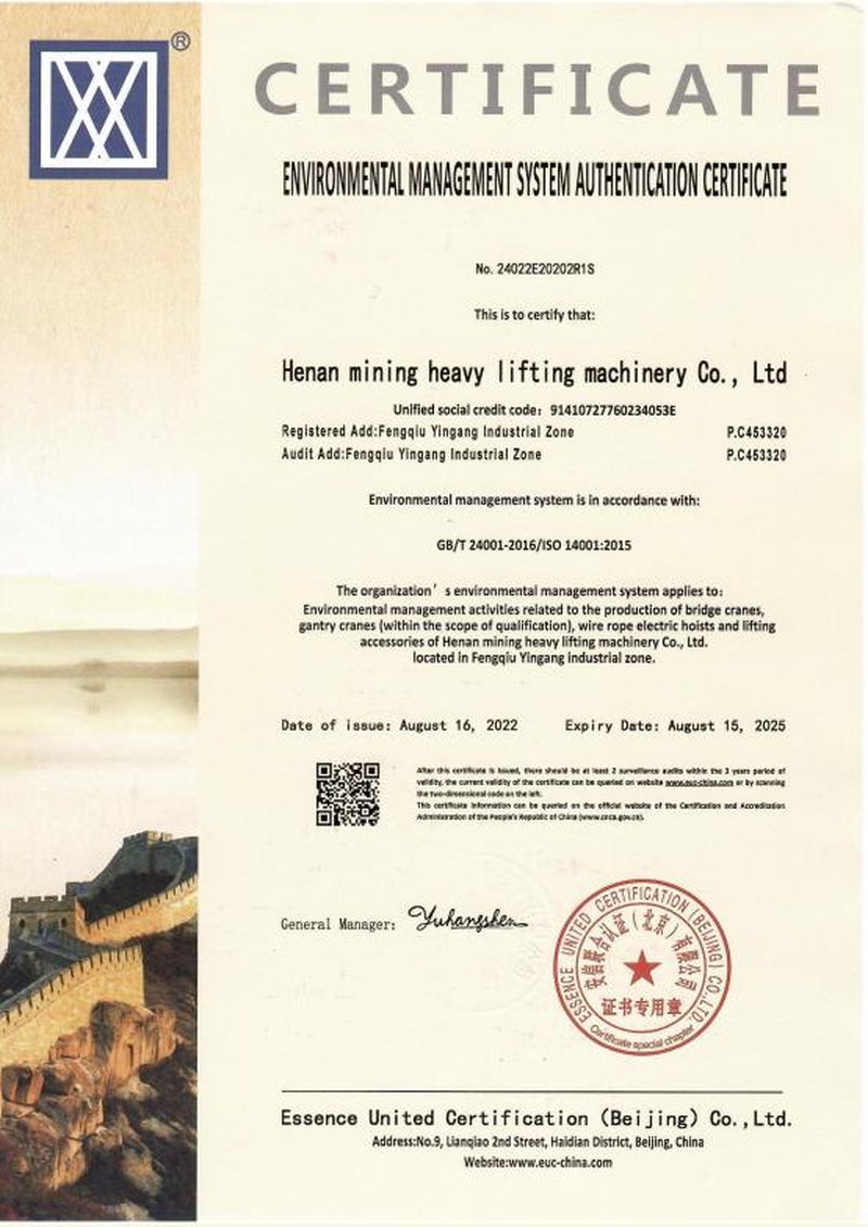 环境管理体系认证证书(英文版)