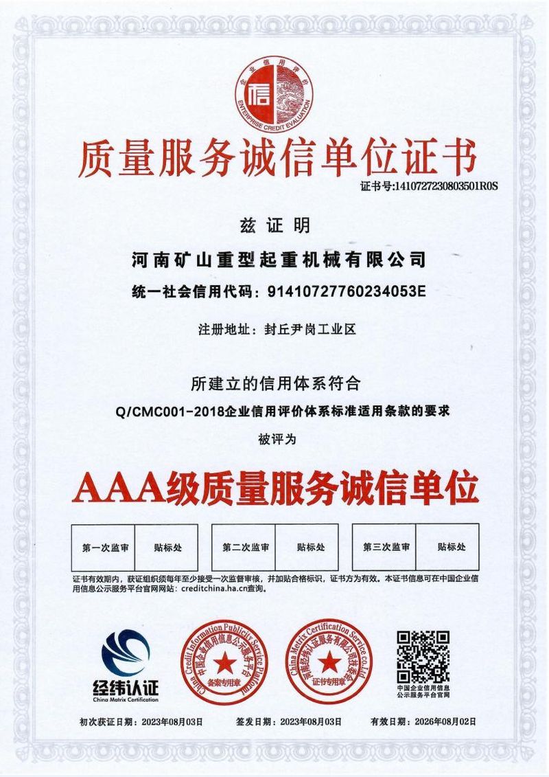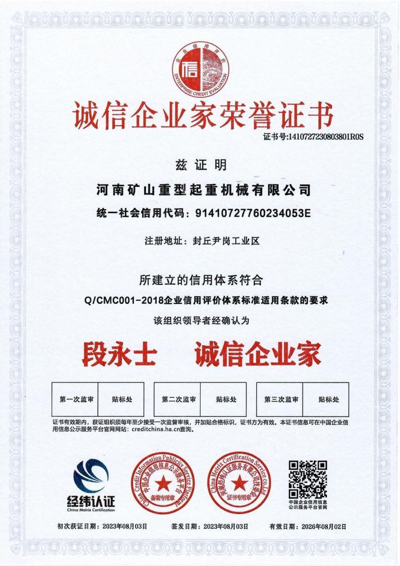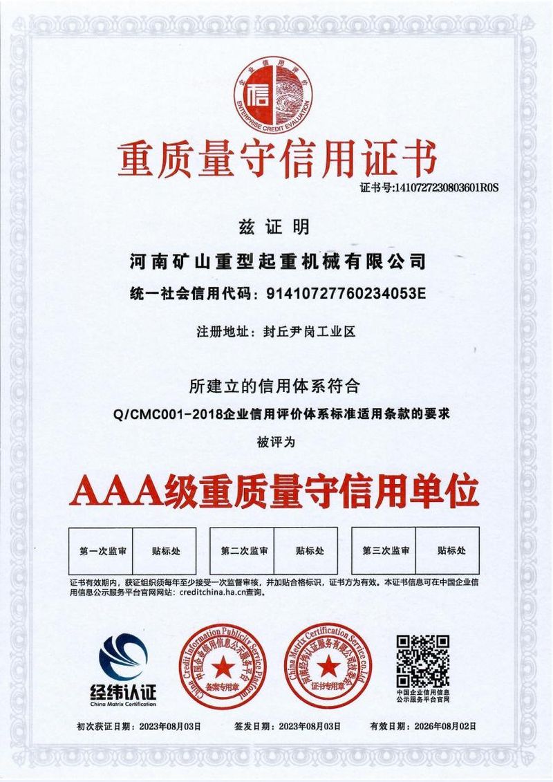重质量守信用证书