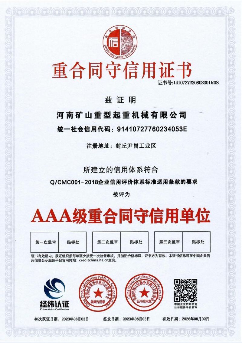 重合同守信用证书