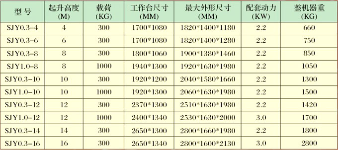 四轮液压升降平台技术参数
